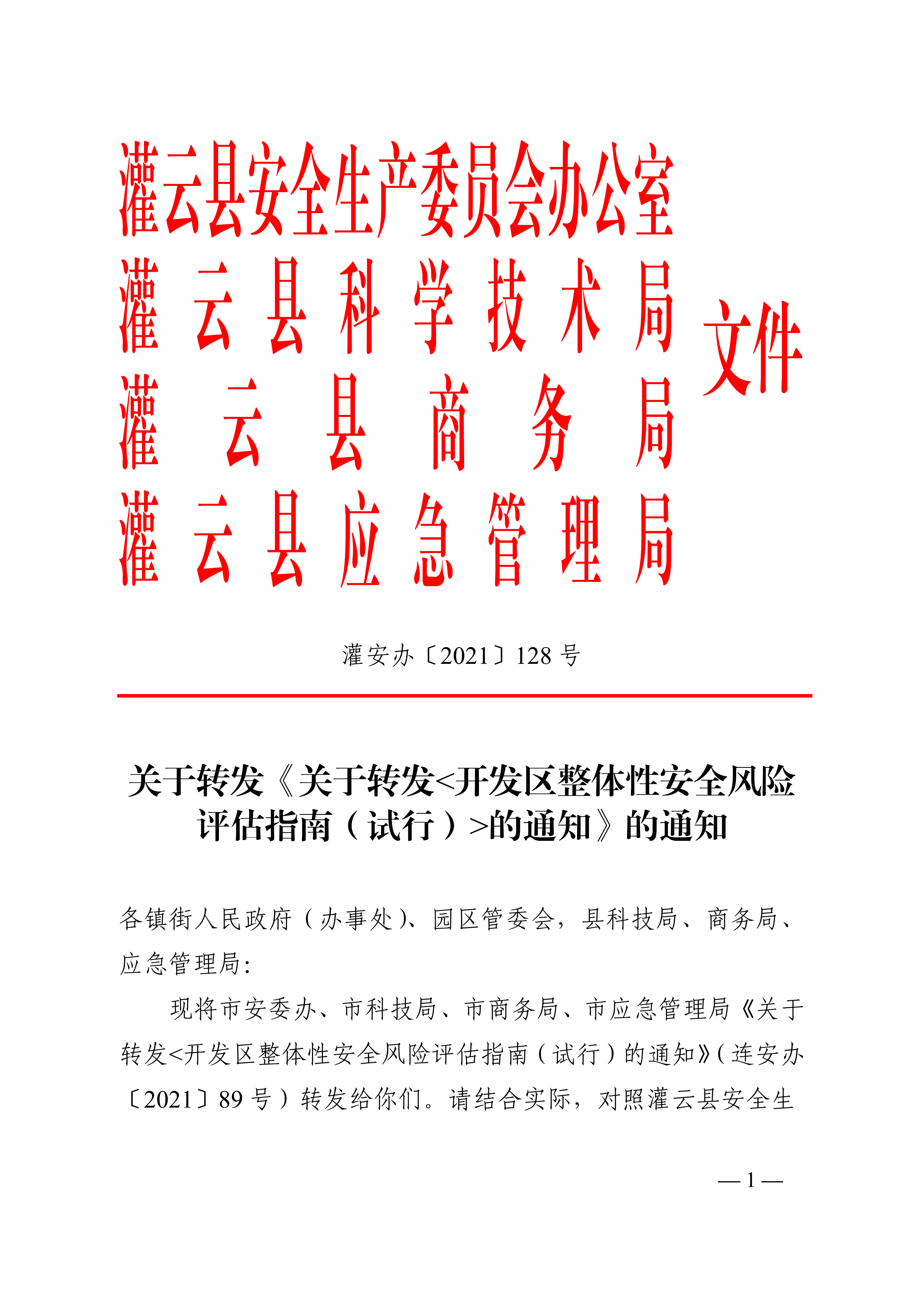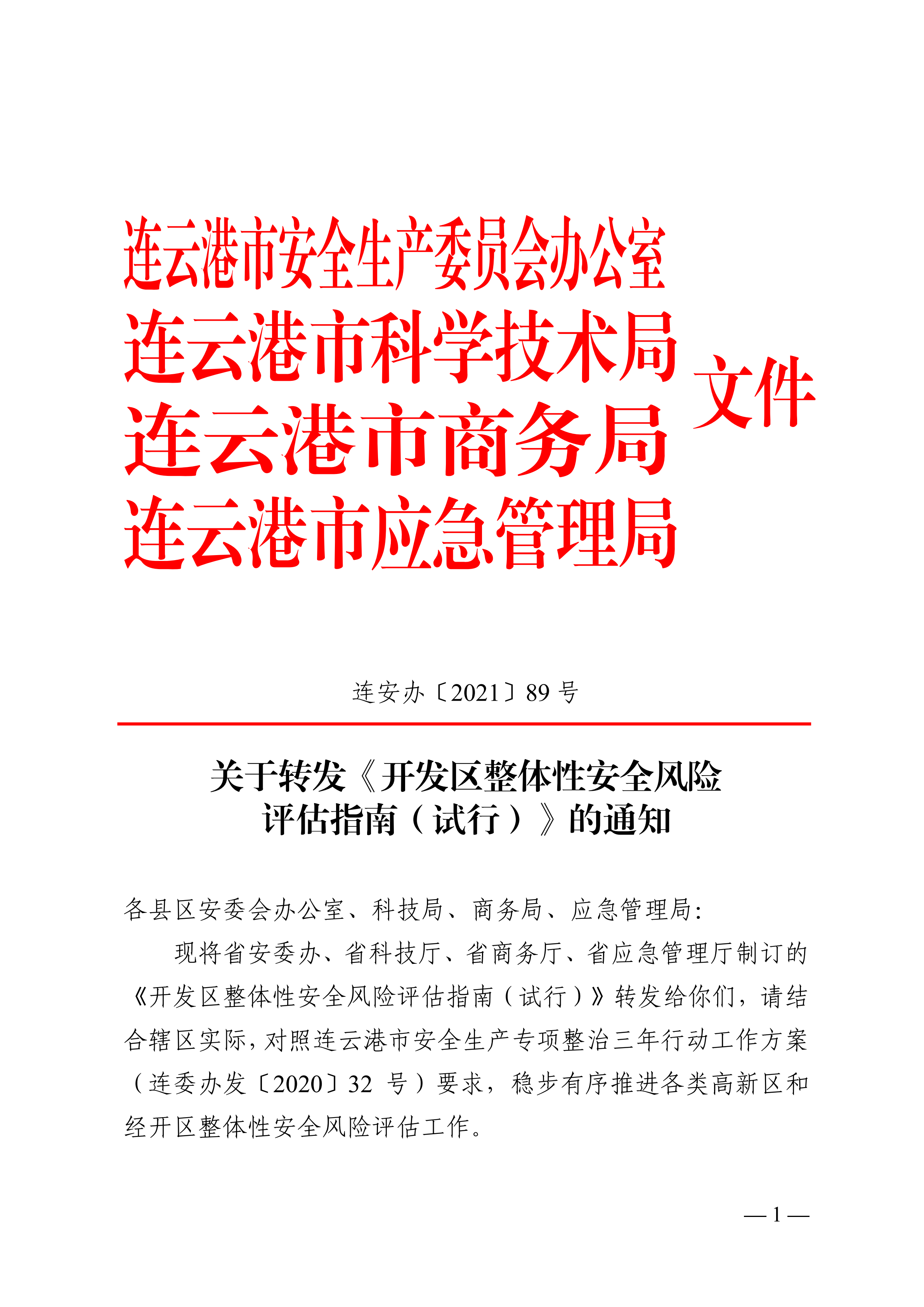 关于转发《关于转发〈开发区整体性安全风险评估指南(试行)〉的通知》的通知