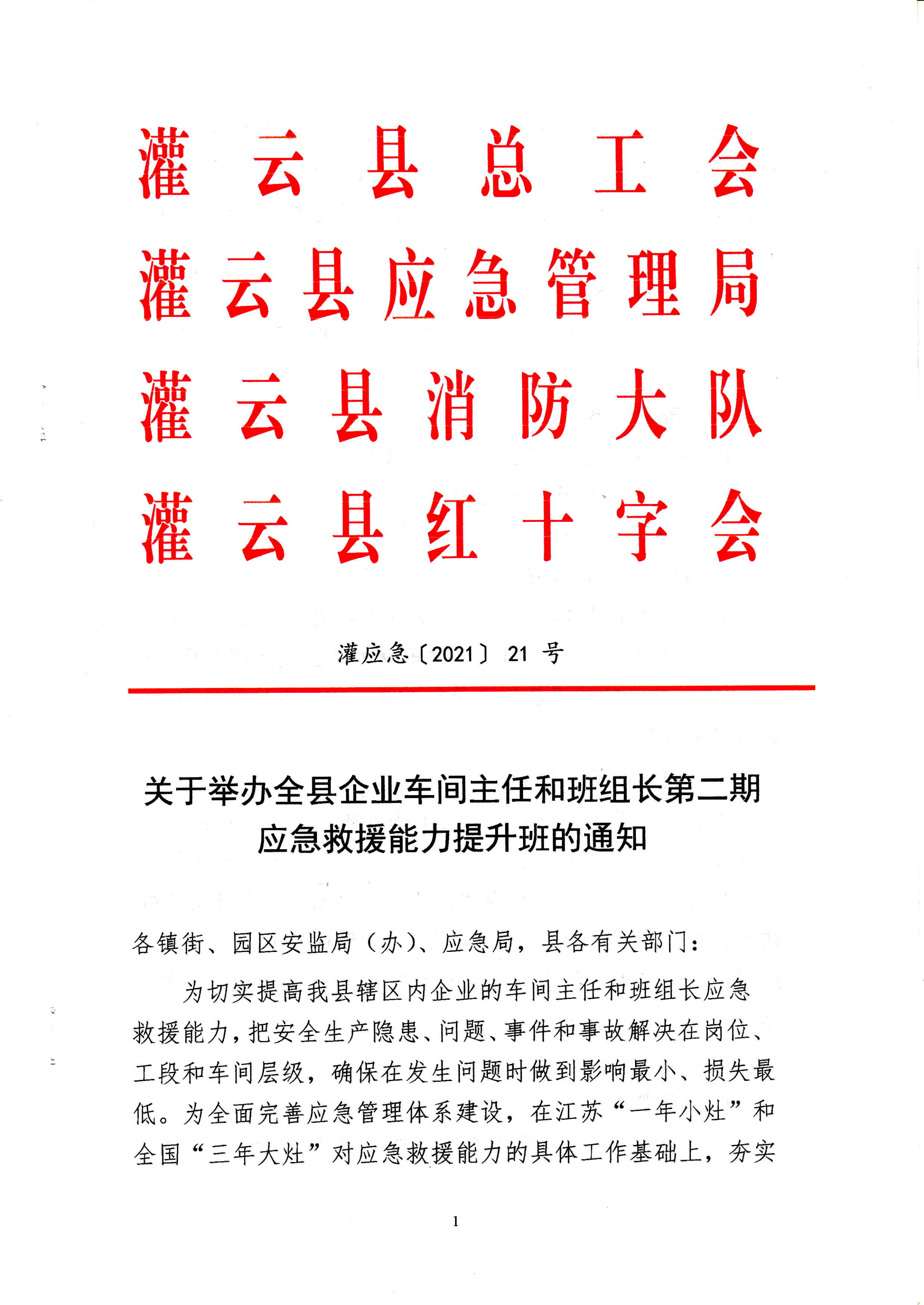 关于举办全县企业车间主任和班组长第二期应急救援能力提升班的通知
